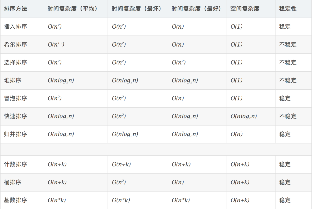 常见的排序:冒泡、快排、插入、归并、选择、希尔