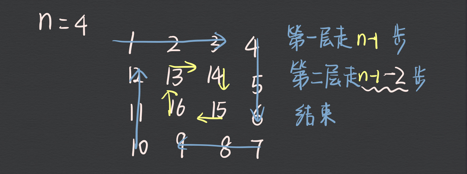 3. 例如类似于第二个螺旋矩阵的题,可以使用 DFS 算法